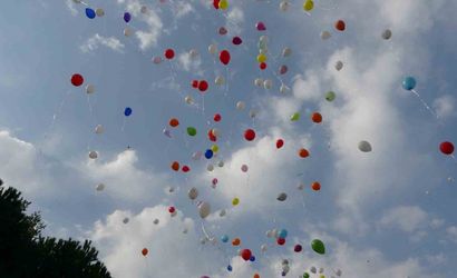 Pasta kesiminin ardından yüzlerce balon gökyüzüne bırakıldı.