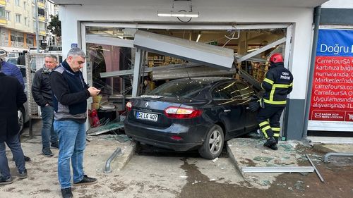 Ordu'nun Ünye ilçesinde bir otomobilin markete girmesi sonucu 3 kişi yaralandı. Kazada olay anı güvenlik kameralarına yansıdı.
