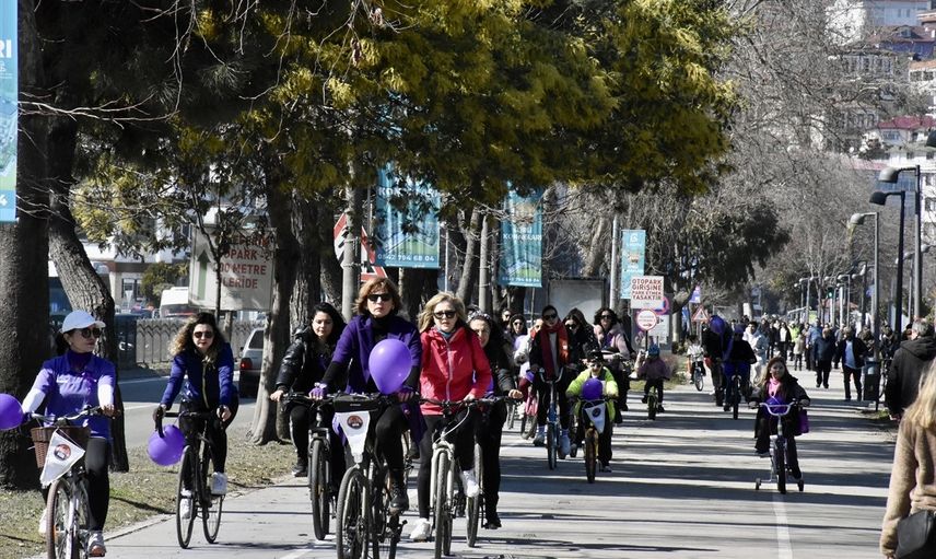 Mor balonlarla süslenmiş bisikletleriyle sahil güzergahında tur yapan kadınlar, hem eğlendi hem de kadının gücünü bir kez daha ortaya koydu. Ordu Baro Başkanı Birsen Uçar, yaptığı açıklamada, kadının emeğinin layık olduğu yeri bulması için farkındalık yaratmak amacıyla bu etkinlikte bir araya geldiklerini belirtti.