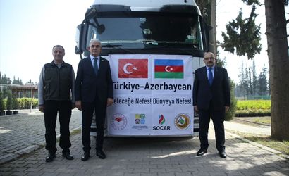 Fidanların yüklendiği tır, Balıkesir İl Müftüsü Hasan Hayri Yaşar'ın duasının ardından Azerbaycan'a uğurlandı.