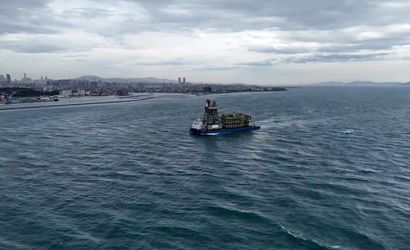 Osman Gazi yüzer üretim platformu parçaları ile Yıldırım Sondaj Gemisi’nin kulesini taşıyan dev platform gemisi, İstanbul Boğazından geçiyor.