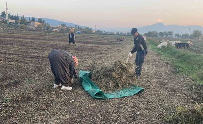 Düziçi ilçesinde 40 yıldır çiftçilik yapan Ahmet Şen, yer fıstığı hasadının ardından tarlada kalan yaprakları toplayıp hayvanlara yem olarak verdiklerini söyledi.