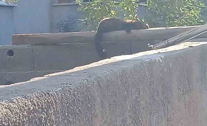 O anları kayda alan vatandaşın cep telefonu kamerasına yansıyan görüntülerde, çevredeki insanların şaşkınlıkla izlediği sansarın bir süre sonra duvardan inip gözden kaybolduğu görülüyor.