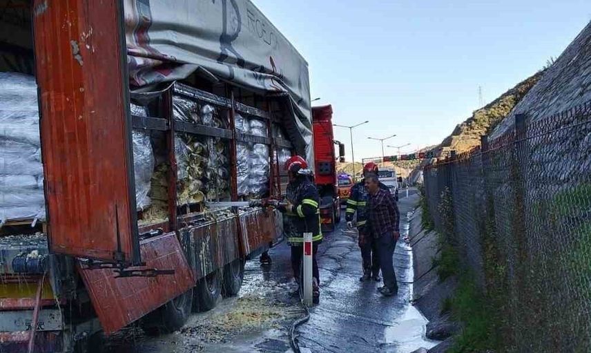 Osmaniye'de Soya Yüklü Tırda Seyir Halinde Yangın Söndürüldü