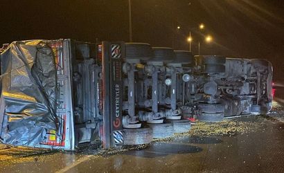 Bahçe'de otoyolda devrilen kamyon nedeniyle kısa süreli trafik aksaması