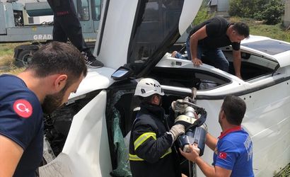 Kaza sonrası ihbar üzerine olay yerine 112 Acil Sağlık, jandarma ve itfaiye ekipleri sevk edildi. Ekiplerin hızlı müdahalesiyle, ağır yaralanan Petek ve Nazar araçlardan çıkarılıp hastaneye kaldırıldı.