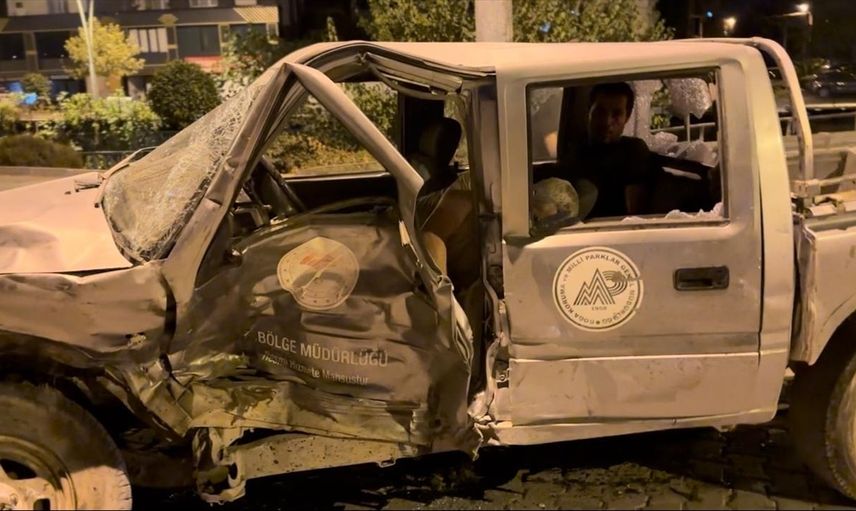 Osmaniye'nin Düziçi ilçesinde meydana gelen kazada, sürücüleri öğrenilemeyen 01 BPN 01 plakalı cip ile Doğa Koruma ve Milli Parklar Şube Müdürlüğü'ne ait kamyonet çarpıştı.