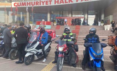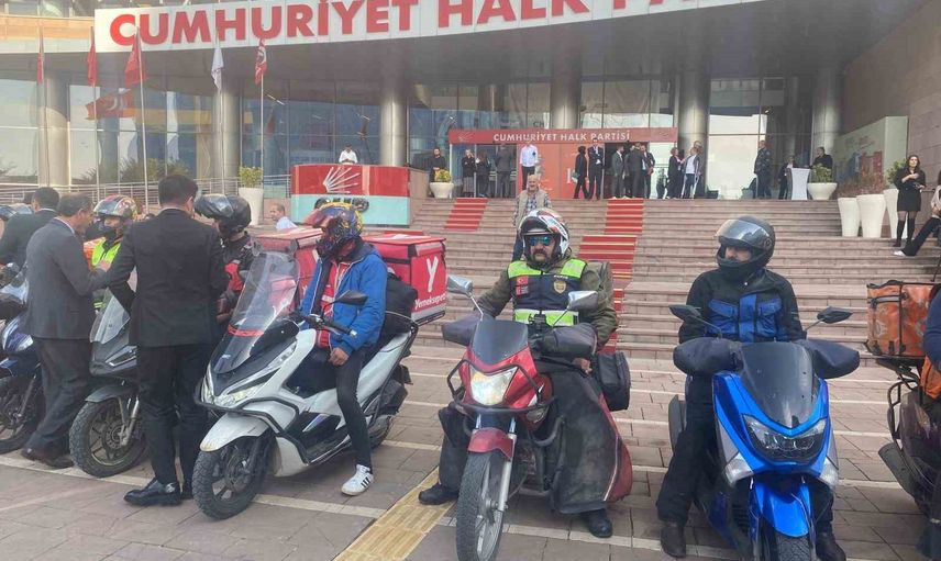 CHP GENEL MERKEZ BİNASINDA ‘EMEĞİN TÜRKİYE'Sİ MOTOKURYELER BULUŞMASI' PROGRAMI DÜZENLENDİ. PROGRAMA, GENEL BAŞKAN ÖZGÜR ÖZEL, GENEL BAŞKAN YARDIMCISI GAMZE TAŞÇIER, MOTOKURYELER VE AİLELERİ KATILDI.