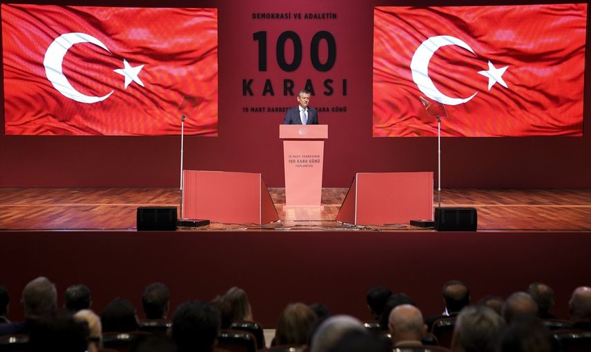 CHP'nin gerçekleştirdiği "100 Karası" başlıklı toplantıda, yolsuzluk ve terör soruşturmaları nedeniyle tutuklanan partili belediye başkanlarının arkasında olduğunu belirten Özel, Ekrem İmamoğlu'nun gelecekte Cumhurbaşkanı olacağına dair inancını dile getirdi.