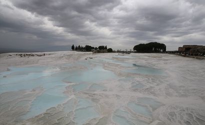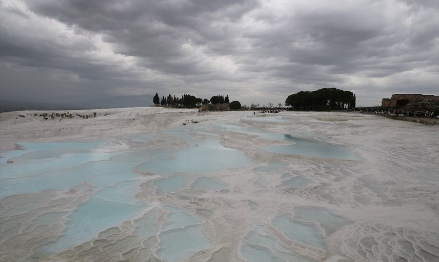 Yerli misafirlerin çoğunlukta olduğu tatilciler, travertenler üzerinde yürüyüp güzel anılarını ölümsüzleştirmek için bolca hatıra fotoğrafı çekti. Ayrıca, antik kenti de gezen ziyaretçiler, etkili olan yağışlara rağmen giriş kapılarında uzun kuyruklar oluşturdu.