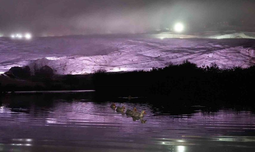 UNESCO Dünya Mirası Listesi'nde yer alan ve "Beyaz cennet" olarak bilinen Pamukkale travertenleri, bembeyaz dokusunu örten sis tabakasıyla adeta kartpostallık manzaralar sundu. Bölgedeki bu görüntüler, ziyaretçiler ve fotoğraf meraklıları tarafından ilgiyle izlendi.