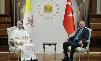 Papa 14. Leo, Cumhurbaşkanı Recep Tayyip Erdoğan ile Cumhurbaşkanlığı Millet Kütüphanesi Cihannüma Salonu’nda düzenlenen Sivil Toplum ve Diplomatik Heyet Toplantısı’nda bir araya geldi. Erdoğan görüşmede, Papa’nın ilk yurt dışı ziyaret durağı olarak Türkiye’yi tercih etmesinin önemine dikkat çekti.