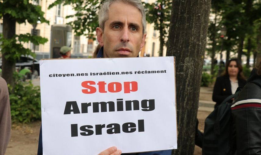 Fransa'nın başkenti Paris'te Dışişleri Bakanlığının önünde bir araya gelen İsrailliler, ülkelerinin Gazze'deki soykırımına karşı gösteri düzenledi. İsrail ordusuna silah gönderilmemesini talep eden göstericiler, Fransa ve AB'nin Tel Aviv hükümetine yaptırım ve askeri ambargo uygulamasını istedi.