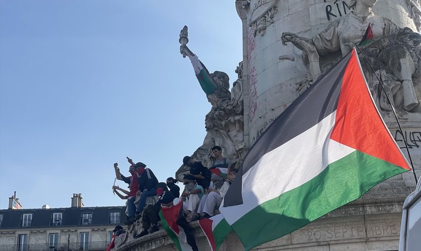 Fransa'nın başkenti Paris'teki Cumhuriyet Meydanı'nda, İsrail'in Gazze'ye insani yardım taşırken uluslararası kara sularında alıkoyduğu Madleen gemisindeki gönüllülerin serbest bırakılması çağrısıyla gösteri düzenlendi.
