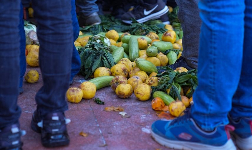 Karabağlar Belediyesi önünde toplanan pazarcılar, Belediye Başkanı Helin İnay Kınay ile görüşmek istedi. Ancak, Başkan’ın kendileriyle görüşmediğini ifade eden esnaf, meyve ve sebzeleri belediye binası önüne dökerek protestolarını gerçekleştirdi.