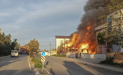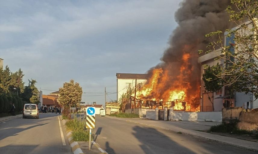 Pendik'te palet fabrikasında çıkan yangına itfaiye ekipleri müdahale ediyor.
