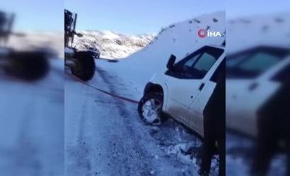Siirt'in Pervari ilçesine bağlı Cemekare Yaylası yakınlarında seyir halinde olan bir yolcu minibüsü, yoğun kar yağışı nedeniyle kontrolden çıkarak yol kenarına yan yattı ve şarampole devrildi.