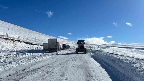 Ardahan'ın Posof ilçesinde kar ve tipi nedeniyle yolda kalan tır şoförlerine Posof Belediyesi ekipleri tarafından sıcak çorba ikram edildi.