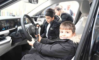 Minik öğrenciler aracı yakından inceleyerek yerli üretimin önemini vurgulayan etkinlikte, Togg hakkında bilgi edindi.
