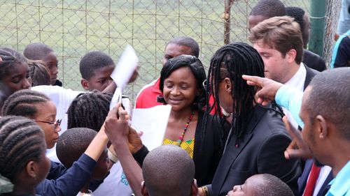 Rigobert Song, Yaounde'deki Türkiye Maarif Koleji spor olimpiyatlarının yarı finaline katılarak 12-17 yaş arasındaki gençlerle buluştu.