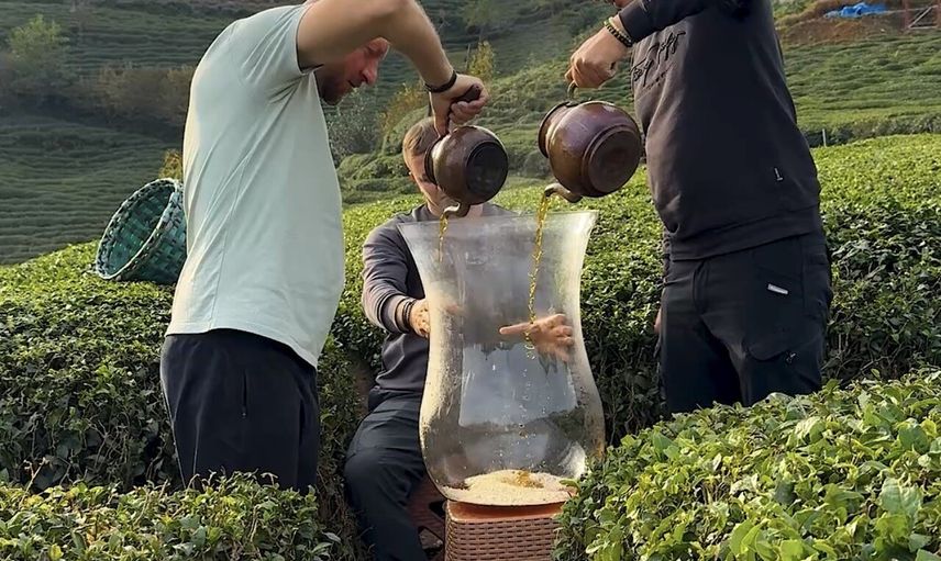 Öne çıkan bilgiler - Çekimi yapanlar: Yusuf Albayrak, Furkan Balkan; mekan: Rize çaylığı; bardağın kapasitesi: 60 litre; videonun önceki ilham kaynağı: 37 milyon izlenme; güncel izlenme: 3 milyona doğru.