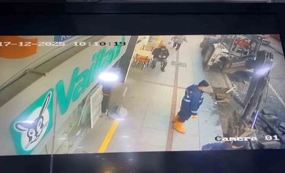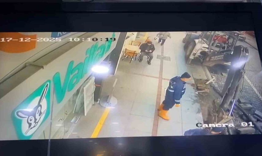 Patlamanın etkilediği bölgedeki bir işletme de fışkıran sudan nasibini aldı; işletmenin camı balçıkla kaplanırken içeri su girdi. Yaşananlar anbean güvenlik kamerasına yansıdı.
