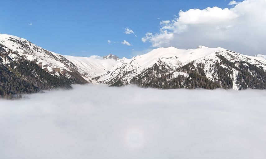 Rize'de kış mevsiminin etkileri hızla kendini gösterirken, Kaçkar Dağları'nın eteklerinde oluşan "sis denizi" göz alıcı görüntüler oluşturdu. Doğal güzellikleriyle her mevsim dikkat çeken bu bölge, soğuk ve yağışlı havanın ardından beyaz bir örtüyle kaplandı.