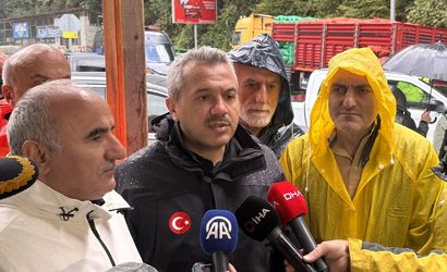 Rize'de sağanak nedeniyle derelerin su seviyeleri yükseldi, heyelanlar meydana geldi. Rize Valisi İhsan Selim Baydaş (sol 2), ulaşıma kapanan Çamlıhemşin ilçesindeki Ayder Yaylası yolunda incelemelerde bulundu.