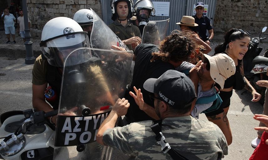 Rodos Adası, bu öğleden sonra, Filistin'e destek vermek isteyen eylemcilerin gerçekleştirdiği protesto ile çalkalandı. CROWN IRIS isimli kruvaziyer gemisi, İsrailli turistlerle birlikte limana giriş yaptığı andan itibaren eylemcilerin hedefi oldu.