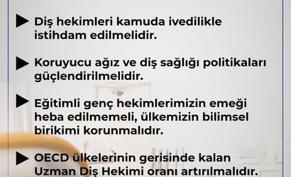 Açıklamada öne çıkan çözüm önerileri arasında kamuda diş hekimi istihdamının artırılması, koruyucu ağız ve diş sağlığı politikalarının güçlendirilmesi, genç hekimlerin eğitimlerinin ve emeğinin heba edilmemesi ile uzman diş hekimi oranının artırılması yer aldı. Sendika, ülkenin bilimsel birikiminin korunması gerektiğini vurguladı.