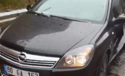 Yağışın ardından aynı bölgede yeniden kaya düşmesi, araçta hasara yol açtı