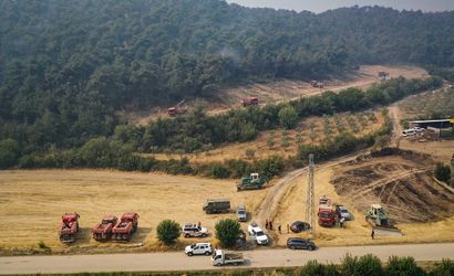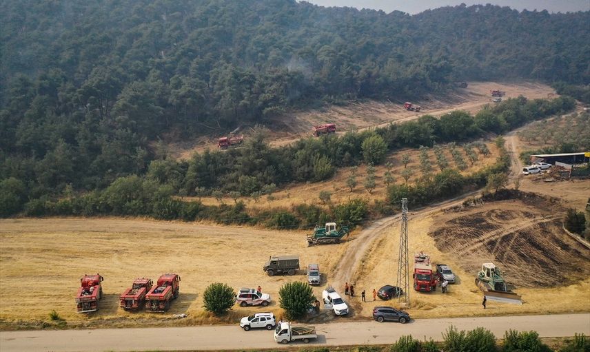 Ekipler, köy etrafında yoğun önlemler almaya devam ederken, yöre halkı da traktörlerinin arkasına bağladıkları su dolu tankerlerle söndürme çalışmalarına destek veriyor.