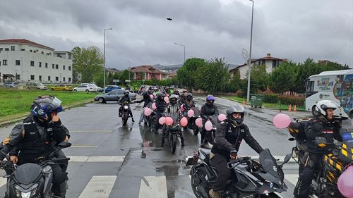 Sakarya Serdivan'da motosikletçiler, pembe balonlarla düzenledikleri turla 1-30 Ekim Meme Kanseri Farkındalık Ayı'na dikkat çekti ve ücretsiz mamografi çağrısı yaptı.