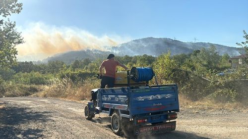 Sakarya'nın Hendek ilçesindeki ormanlık alanda çıkan yangın, itfaiye ve Orman Bölge Müdürlüğü ekipleri tarafından söndürülmeye çalışılıyor.