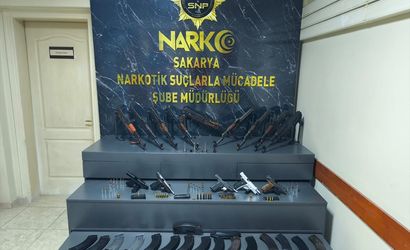 Sakarya'da polis memurunun aracında 9 kaleşnikof piyade tüfeği, 5 ruhsatsız tabanca ele geçirildi, zanlı gözaltına alındı.