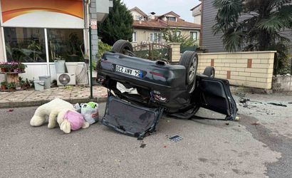 İçinde H.Y. (24) bulunan araç, taklalar atarak yaklaşık 3 metre yükseklikten alt sokağa devrildi. Hurdaya dönen otomobilden sürücü burnu bile kanamadan kurtuldu.