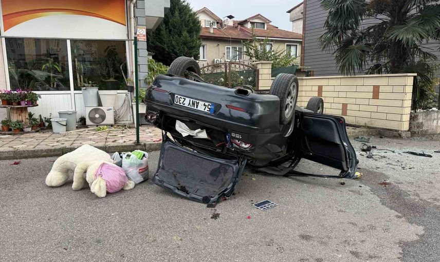 Sakarya'da takla atan otomobilden sürücü burnu kanamadan kurtuldu
