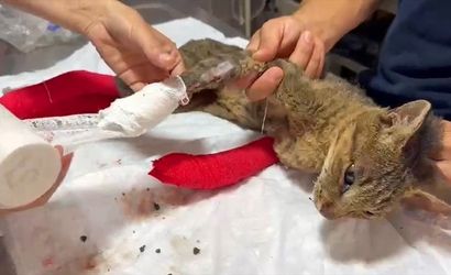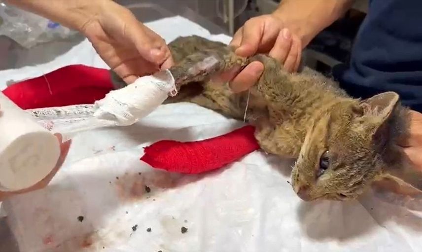 Yangın bölgesinde soğutma çalışmaları yürüten ekipler, yaralı kediyi bularak Osmaneli Belediyesi Sokak Hayvanları Tedavi ve Rehabilitasyon Merkezi'ne teslim etti. İlk muayene sırasında kedinin vücudunun çeşitli bölgelerinde yanıklar olduğu belirlendi.