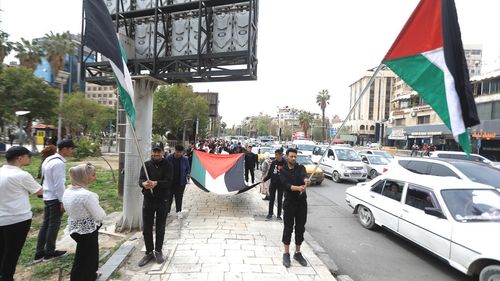 Şam’da toplanan yüzlerce kişi, İsrail'in Gazze'ye yönelik saldırılarını protesto etti ve dayanışma mesajları verdi.