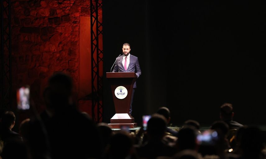 Suriye'nin başkenti Şam'da, Cumhurbaşkanı Ahmed Şara ve iş insanlarının katılımıyla ülkenin yeniden imar sürecine katkı sağlaması hedeflenen Suriye Kalkınma Fonu'nun lansmanı gerçekleştirildi. Cumhurbaşkanı Şara, Şam Kalesi avlusunda düzenlenen lansmanda konuşma yaptı.
