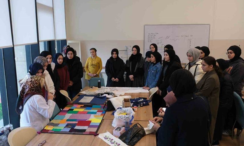 Akyazı SAMEK merkezini ziyaret eden Akyazı İmam Hatip Lisesi'nden 18 öğrenci, usta öğreticilerden tezhipin inceliklerini dinledi ve uygulama yapma fırsatı buldu. Gençler ayrıca iğne oyası ve çeyiz branşlarını gezerek unutulmaya yüz tutan üretim süreçlerine tanıklık etti.