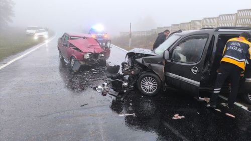 Samsun'un Alaçam ilçesinde hafif ticari araç ile otomobilin çarpışması sonucu 1 kişi öldü, 6 kişi yaralandı.