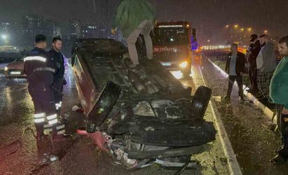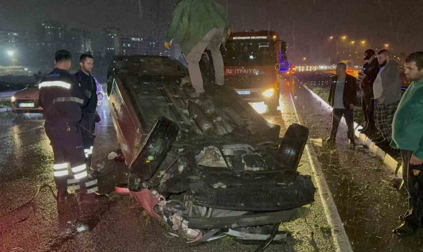 Kontrolden çıkan araç refüje çarpıp takla attı, yolcular yara almadan kurtuldu