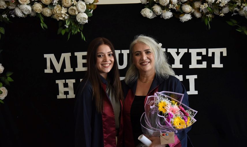 Anne ve kız, mezuniyet töreninde duygu dolu anlar yaşarken, eğitim hayatında birbirlerine nasıl destek olduklarını ve birlikte bu başarıyı nasıl elde ettiklerini vurguladılar.