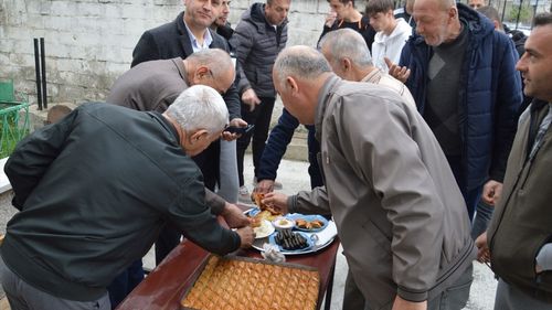 Samsun'un Havza ilçesinde bayram namazı sonrası cemaat, cami avlusunda birlikte kahvaltı yaparak geleneklerini sürdürüyor.
