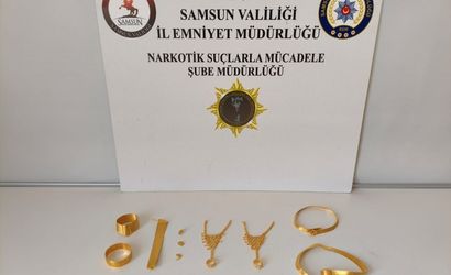 Samsun'un İlkadım ilçesinde dolandırıcılık suçundan aranan hükümlü, sahte altınla yakalandı. Hükümlünün aracında yapılan aramada, sahte hasır altın seti ele geçirildi.