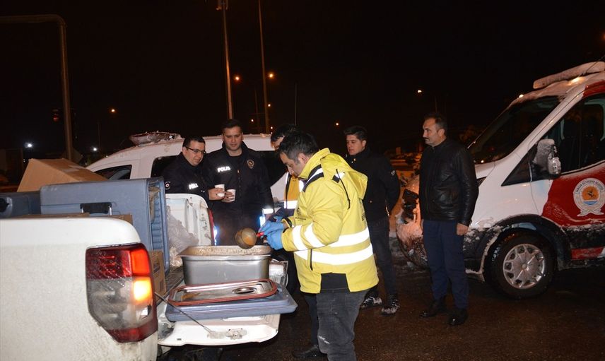 Mahsur kalanlar ile birlikte, polis, Karayolları, itfaiye ve sağlık ekipleri gibi çalışmalarda görevli olanlara sıcak çorba ikram ederken, bu anlamlı destekle halkın moraline katkı sağlandı.