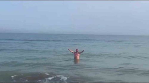 Atakum'da mevsim normallerinin üzerinde seyreden sıcaklıklar nedeniyle İncesu Yalı Mahallesi'nde yaşayan 41 yaşındaki bir vatandaş Kasım ayında denize girerek güneşin tadını çıkardı.