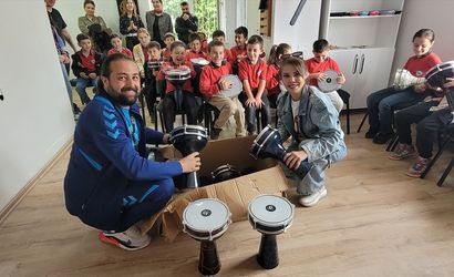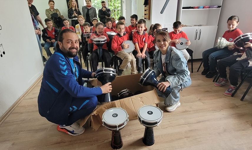 Samsun'un Tekkeköy ilçesindeki köy okulunda okuyan öğrencilerin darbuka hayalini gönüllüler gerçekleştirdi.