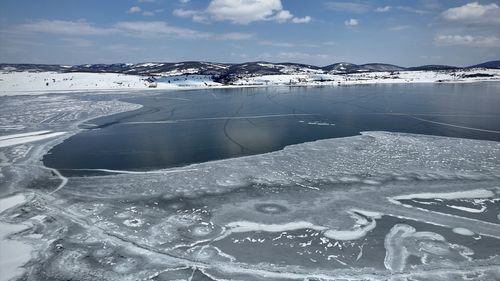 Samsun'un Ladik ilçesindeki Ladik Gölü, kar yağışı ve düşük sıcaklık nedeniyle büyük ölçüde dondu. Göl, birçok kuş türüne ev sahipliği yapıyor.